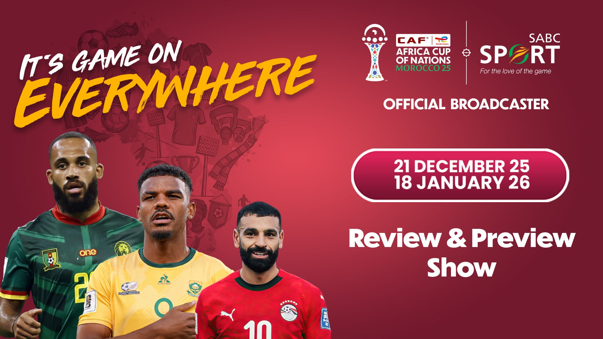 The AFCON 2025 Preview & Review show delivers expert football analysis from the studios to your screens. Our Analysts deliver in-depth pre & post-match analysis that aligns and connects football fans across the continent.